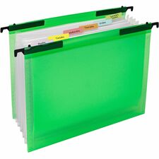 8 1/2" x 11" - 7 Pocket(s) - Green - 1 Each. Retractable hanging tabs allow quick storage in cabinets. Elastic closure secures your documents for safe transportation.