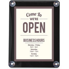 8.5" Width x 11" Height - Rectangular Shape - Glass-mountable, Window-mountable - Double Sided - UV Protected, Heat Resistant, Suction Cup - Restaurant, Door, Wall - Black - 1 Each. Double-sided display easily mounts to glass and nonporous doors and walls with suction cups (included). Inserts simply slide in and out.