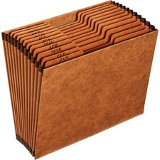 8 1/2" x 11" - 12 Pocket(s) - Top Tab Location - 80 pt. - Tyvek - Brown - Reinforced, Heavy Duty, Rip Resistant - 10% Recycled - 1 Each. Heavyweight, front/back panels are made to withstand everyday use. Reinforced gussets at the top and bottom corners.