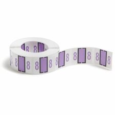 8 - x 1 1/4" Width x 1" Length - Lavender - Laminated - 500 / Roll. Convenient dispensing box for easy peel-off and application. Protected by clear laminate for extra durability.
